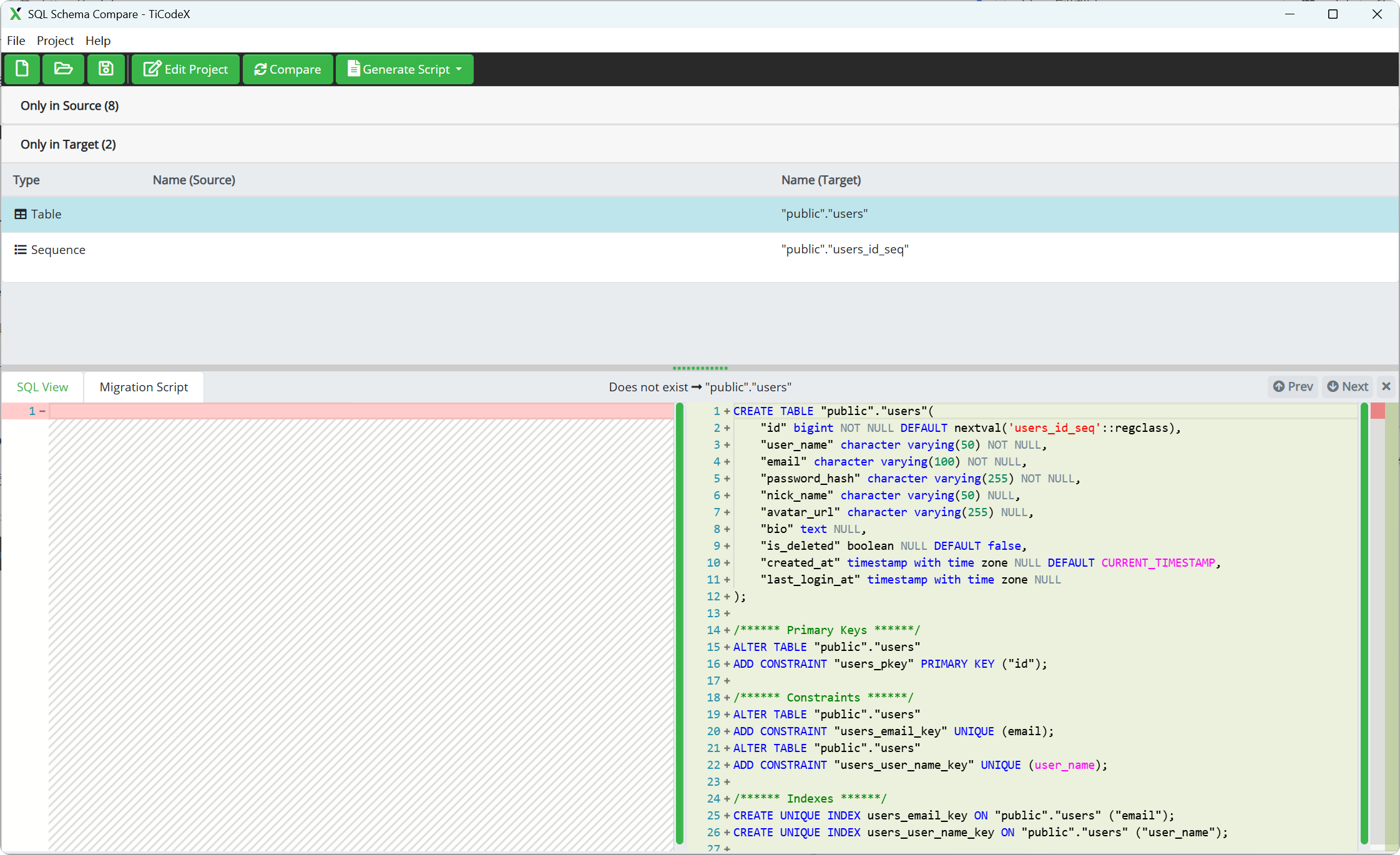 TiCodeX SQL Schema Compare 通过自动化的数据库模式比较解决了不同数据库环境之间的结构同步问题,提升工作效率的同时降低了人为错误的风险。