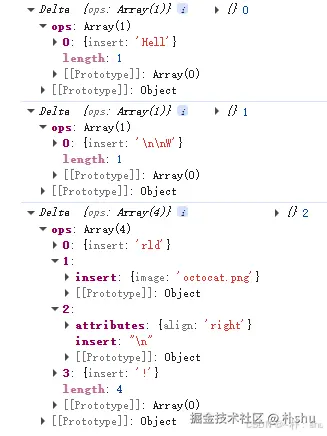 const base = new Delta().insert("Hello\n").insert("World");创建了Hello\nWord字符;- 记住上诉步骤的结果,