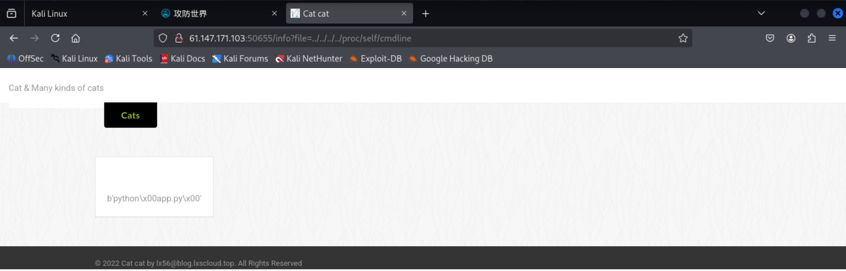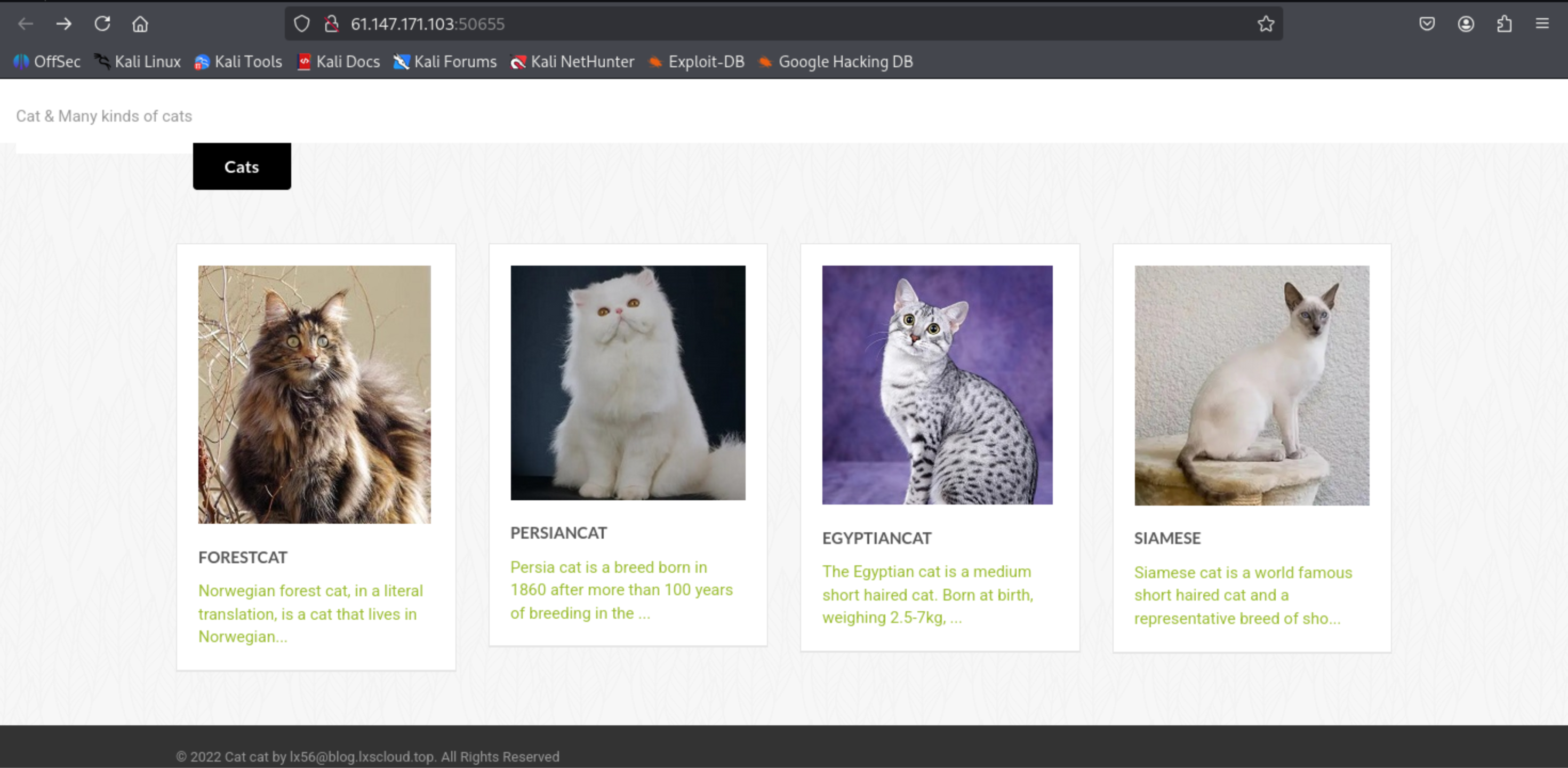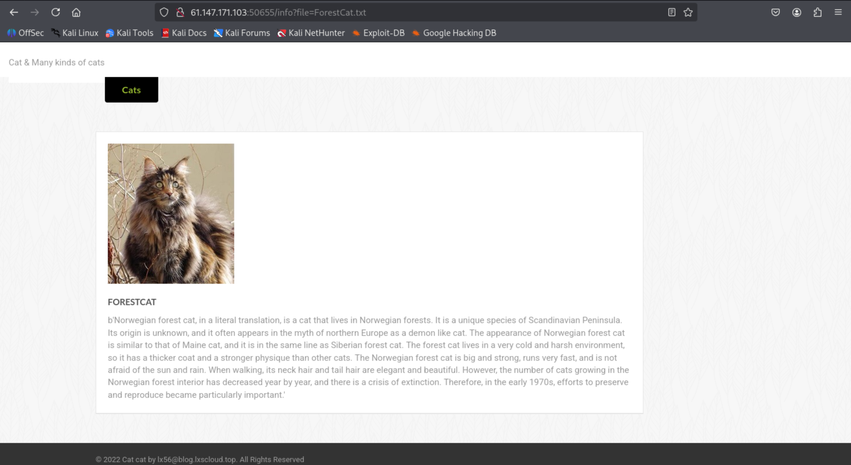 打开题目环境可以看到是一个介绍猫猫的网站