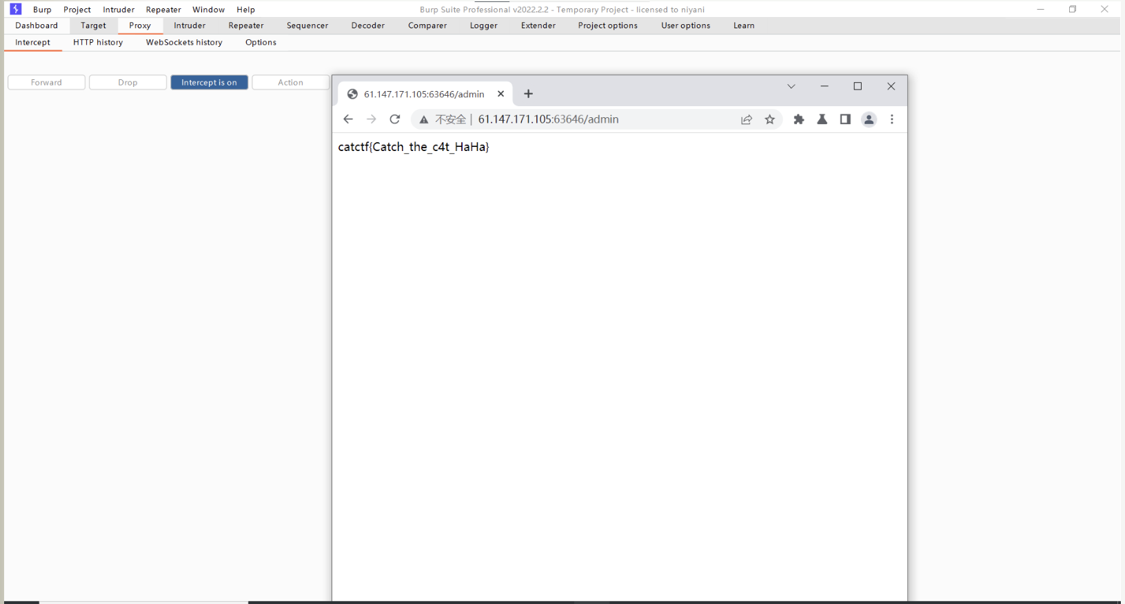 最后使用伪造的session来修改cookie并访问/admin。获得flag:catctf{Catch_the_c4t_HaHa}