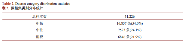 该数据集来源于飞桨AI Studio平台的公开情感分析语料库,已由平台进行了初步的情感标注。尽管源数据集已包含基础的情感标注,为确保标注质量的可靠性及其与本研究任务的一致性,执行系统的质量控制。经过质量检验后的最终数据集统计特征如下表2所示。
