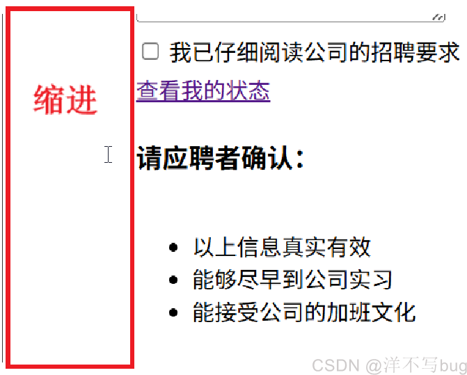 上篇简历制作博客中,每行内容并没有缩进,全程都是直接用p标签来换行