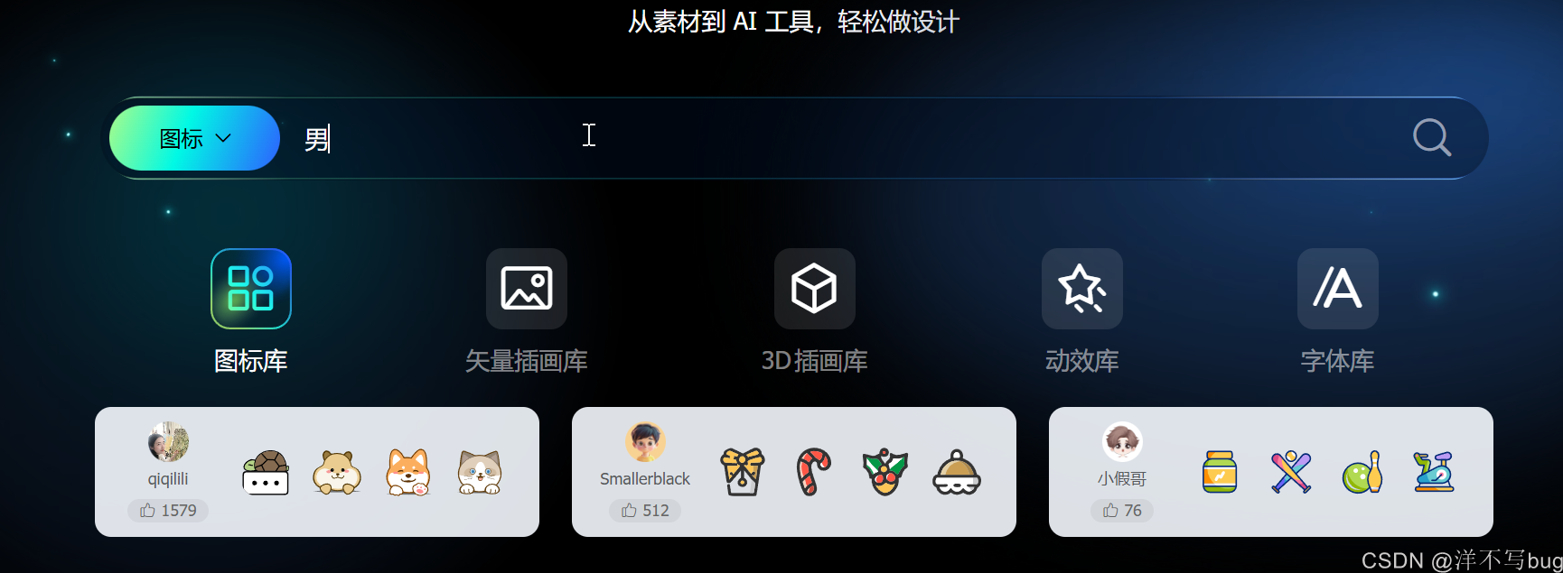 进入网站后在搜索框中分别输入男和女查询,再以png格式下载