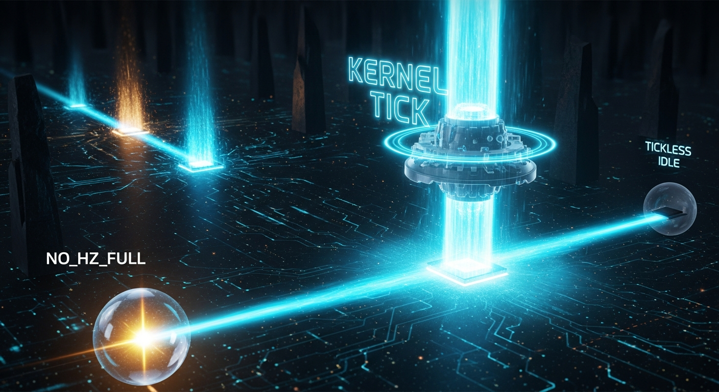 NO_HZ_FULL) :这是NO_HZ的进一步演进。NO_HZ_IDLE只在CPU完全空闲时才停止滴答。但对于某些特定负载,如高性能计算(HPC)或硬实时任务,即使CPU上正忙于运行一个单一的用户空间进程 ,内核滴答本身也会构成一种不必要的干扰(OS Jitter)。NO_HZ_FULL允许在这种情况下也停止滴答,从而为该进程提供一个几乎"无干扰"的运行环境,将CPU完全让给应用程序。