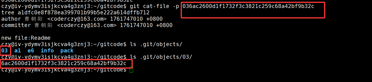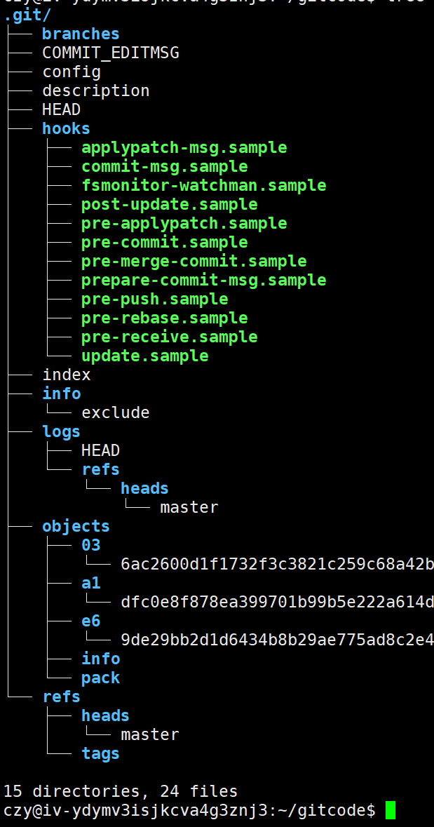 czy@iv-ydymv3isjkcva4g3znj3:~/gitcode$ ls .git/objects/
