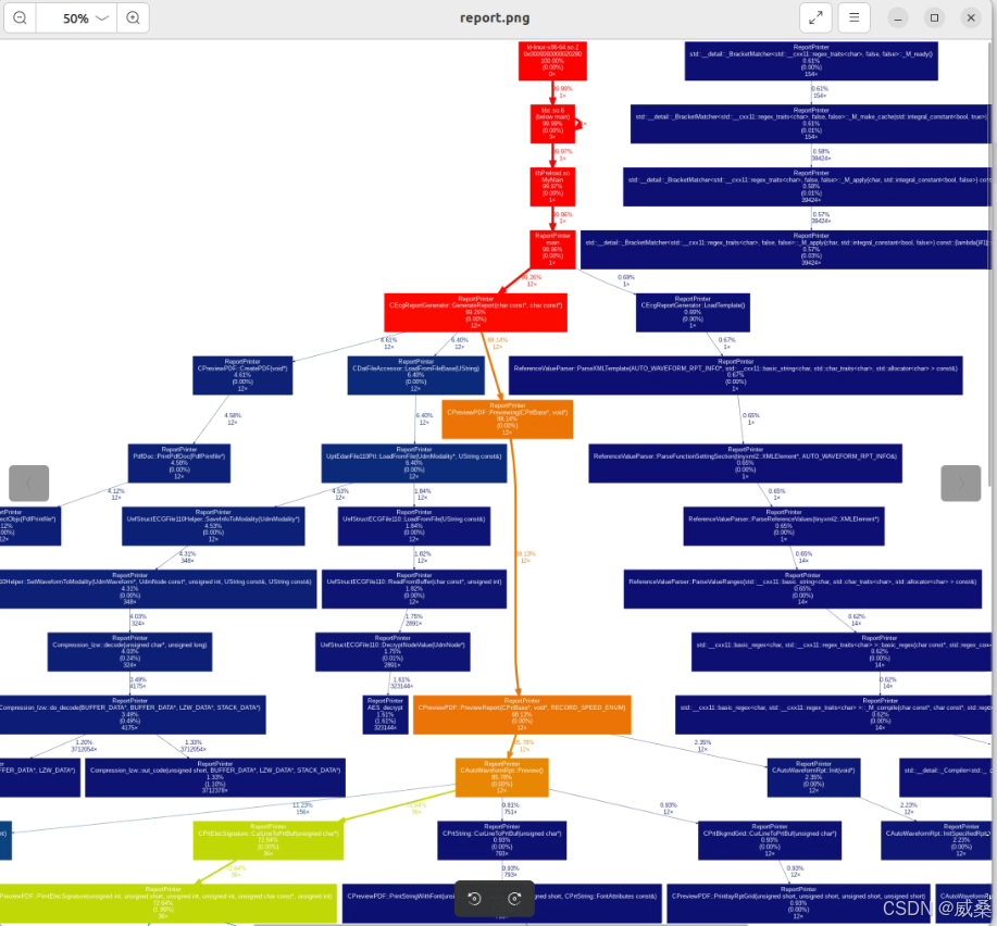 它生成的结果非常详细,甚至连函数入口,及库函数调用都标识出来了。