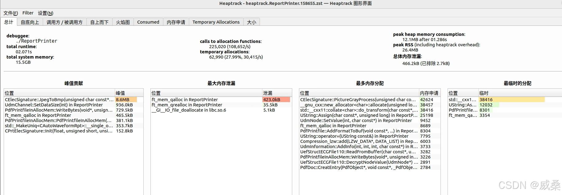 - Heaptrack:适用于 内存泄漏分析,并且提供可视化分析工具。