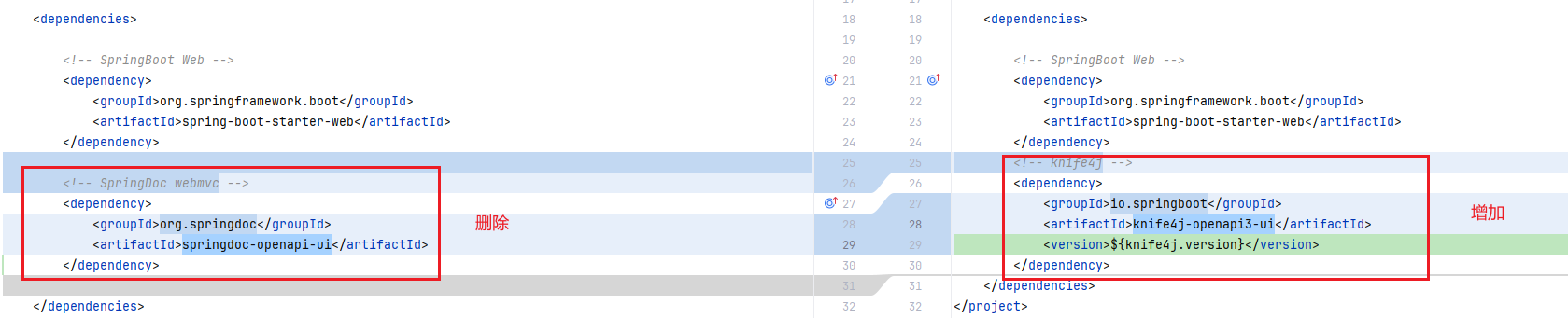 2.swagger服务的pom中删除 springdoc-openapi-ui 依赖,增加 knife4j-openapi3-ui依赖
