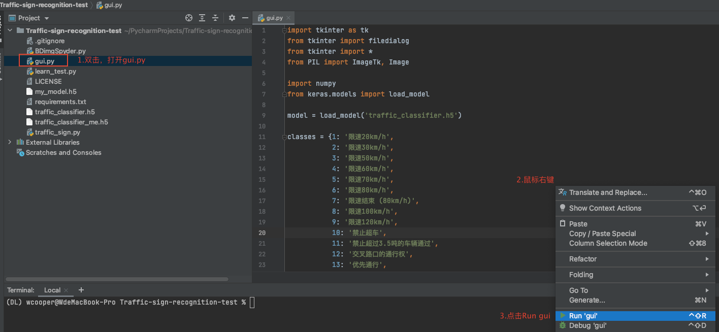 gui.py文件,修改模型路径名为刚刚生成的my_traffic_classifier.h5