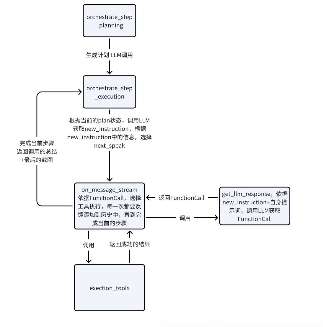 真正开始调用工具进行执行,将工具的执行结果和执行完毕的截图包装成ChatMessage返回给用户。(第三次返回,输入操作成功,截图:xxx)