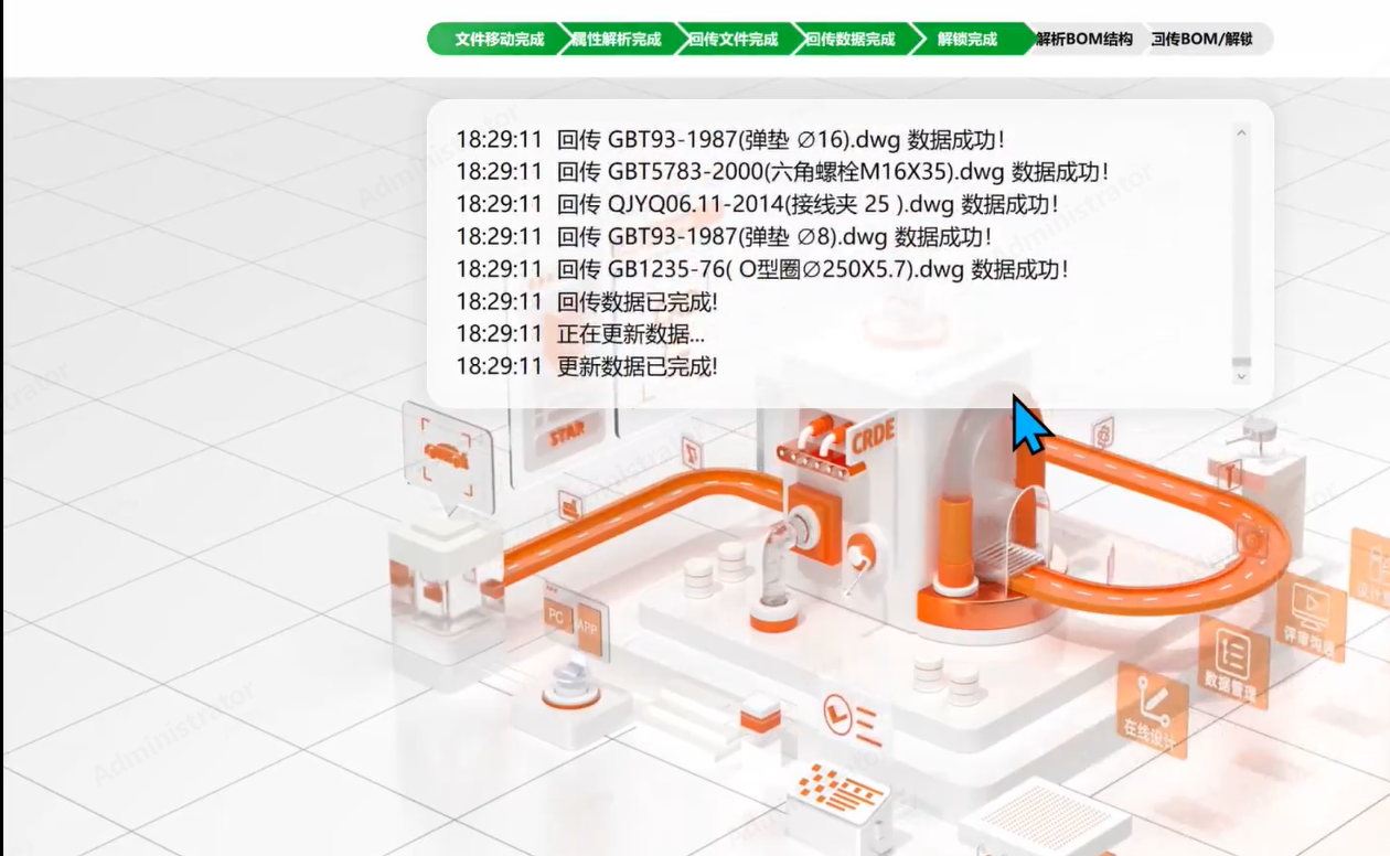 **"ACAD传回"功能只是智橙众多能力中的一个切入口,它体现了系统对二维图纸数据的自动识别、结构化和可追溯处理能力。**更重要的是,它与整个 PLM 平台深度融合,使设计数据、BOM、工艺流程和供应链信息形成完整的数字化闭环。在这个闭环中,每一次设计变更、每一个审批节点都被精准记录,团队成员能够随时获取最新信息,避免重复劳动和沟通误差。