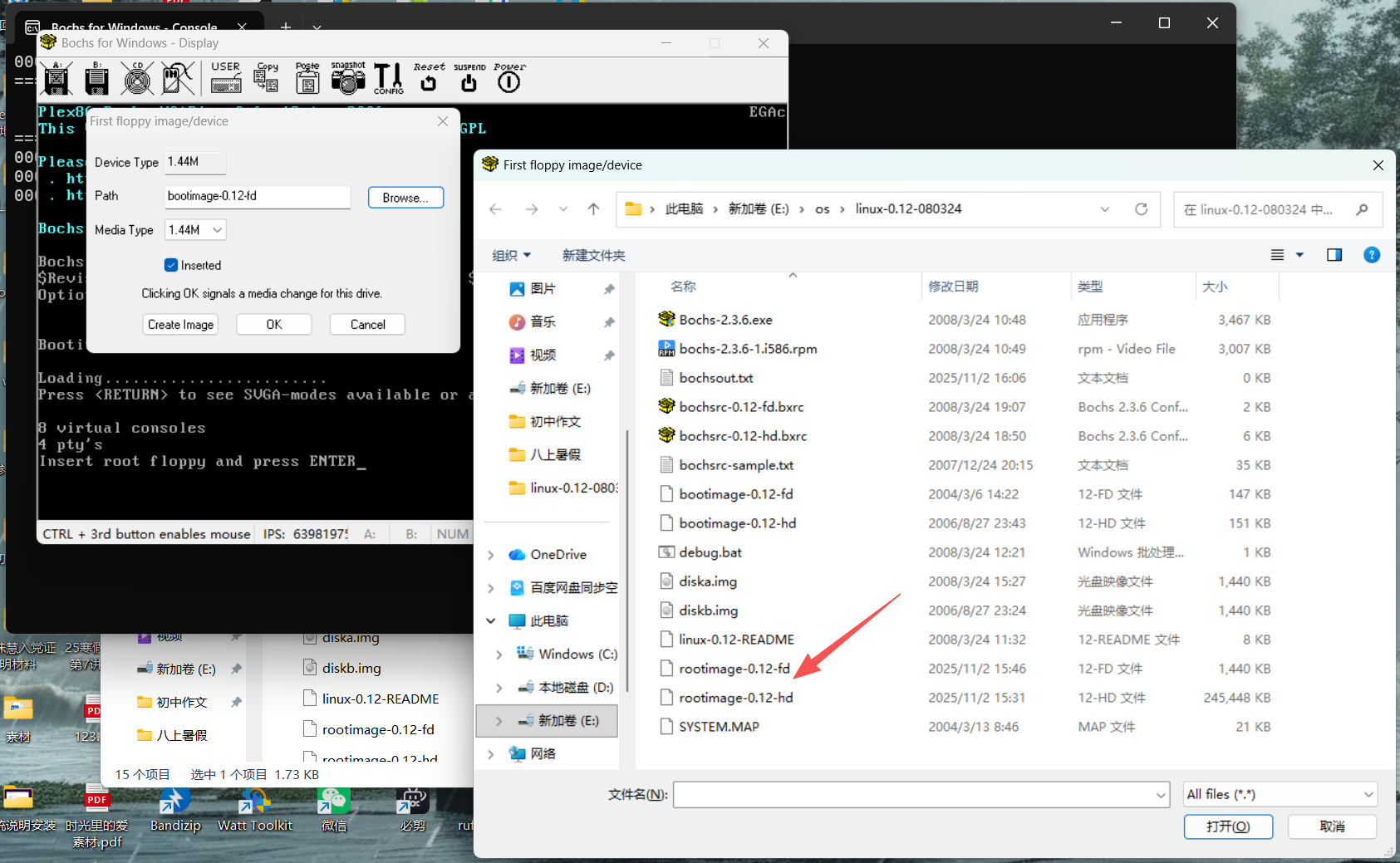 4.更换A盘映像文件(Linux0.12根文件系统)