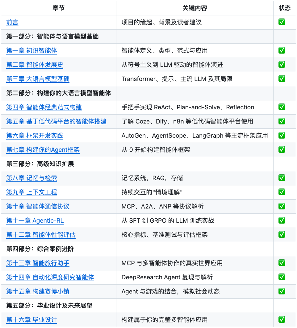 最早的issue就是求更PDF版本。终于,在昨天正式完成第16章节后,我们第一时间进行审校、排版优化,同时把所有正文的问题都review了一边。《Hello-agents》完整PDF免费下载: