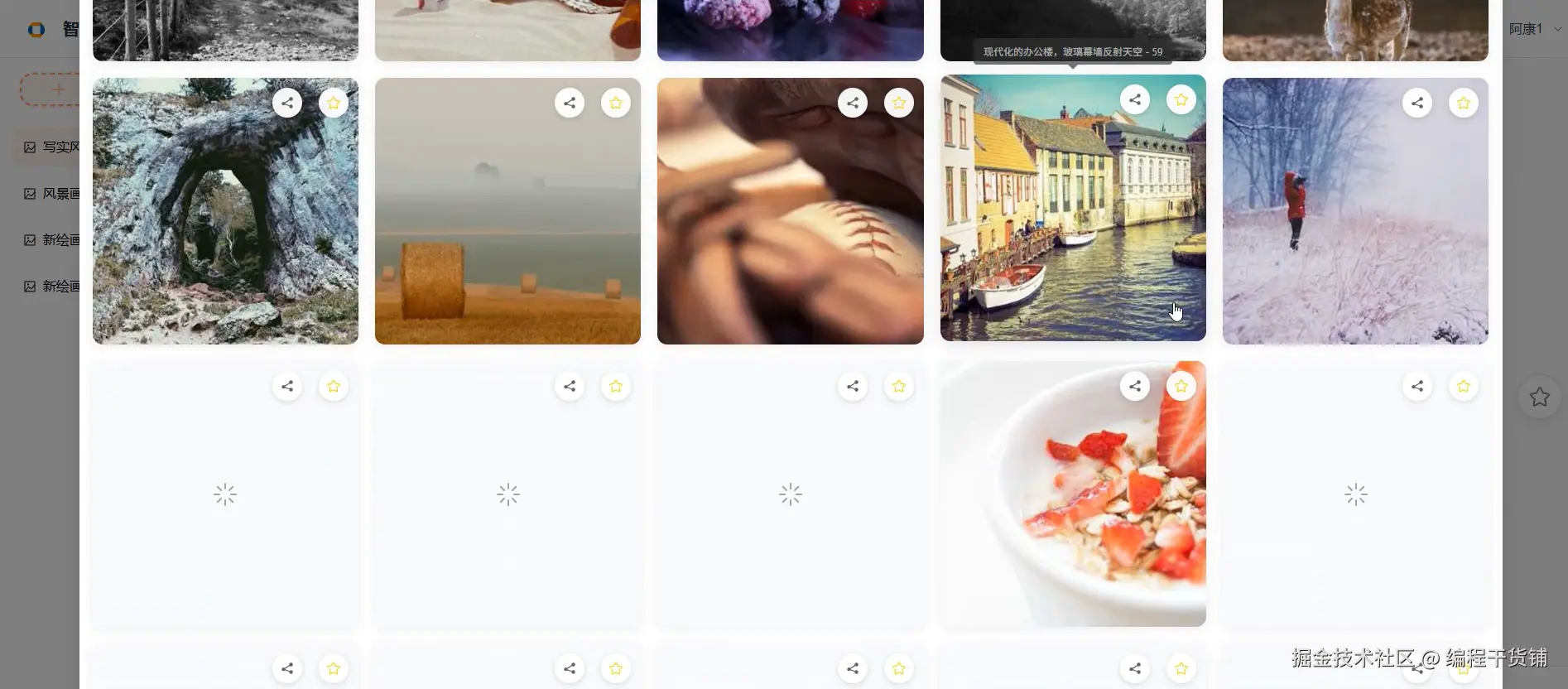 - 首屏直出 :固定渲染并加载首批 12 张图片,平衡 "快速可见" 与 "资源可控"。
