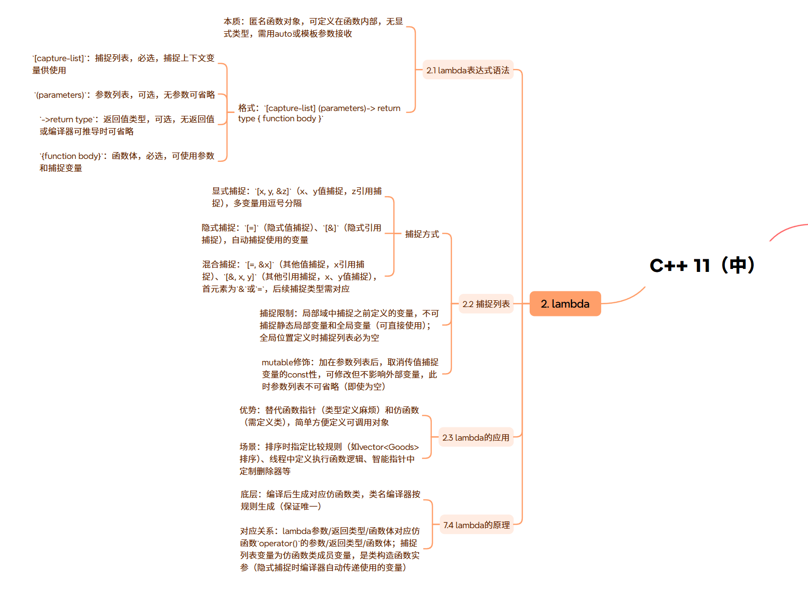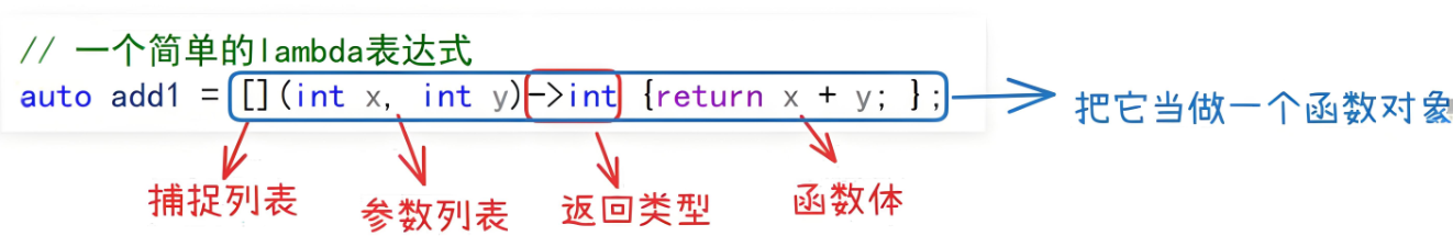 | 实际应用场景 | 1. 结合 STL 算法:sort(vec.begin(), vec.end(), [](int a,int b){return a>b;});2. 条件查找:find_if(vec.begin(), vec.end(), [](int x){return x>3;}); |