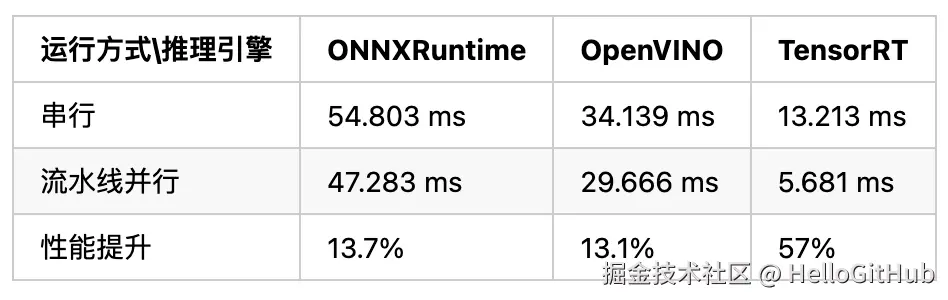 - 流水线并行:前处理、推理、后处理等环节并行,提升数据吞吐。
