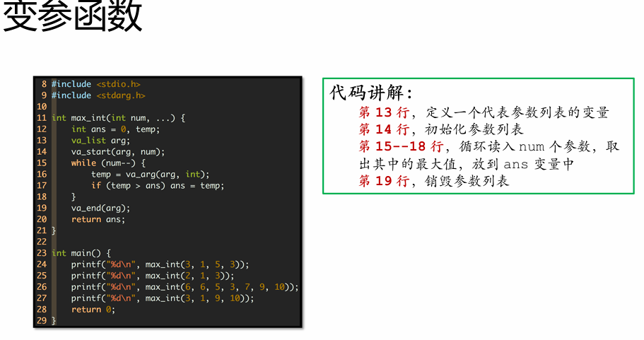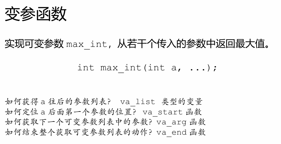 这里 a 代表有 a 个整数,并且......不代表省略号,而是用来表示变参列表的