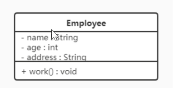 在UML类图中,类使用包含类名、属性(field)和方法(method)且带有分割线的矩形来表示: