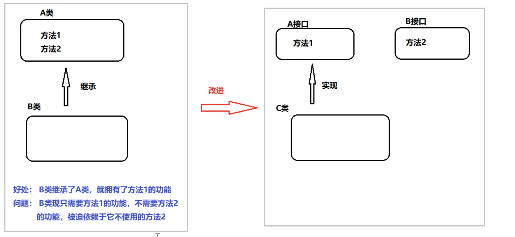 想要达到这样的效果,我们需要使用接口和抽象类: