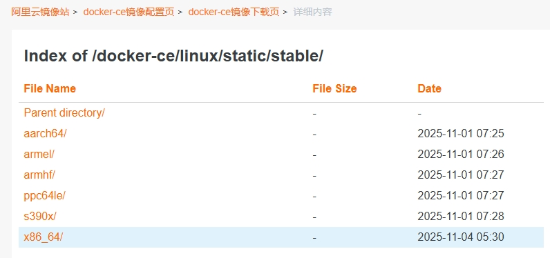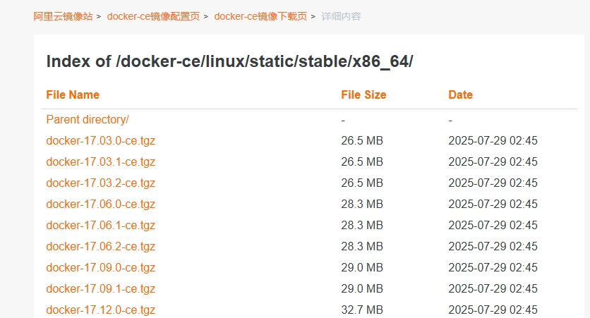 https://mirrors.aliyun.com/docker-ce/linux/static/stable/x86_64/