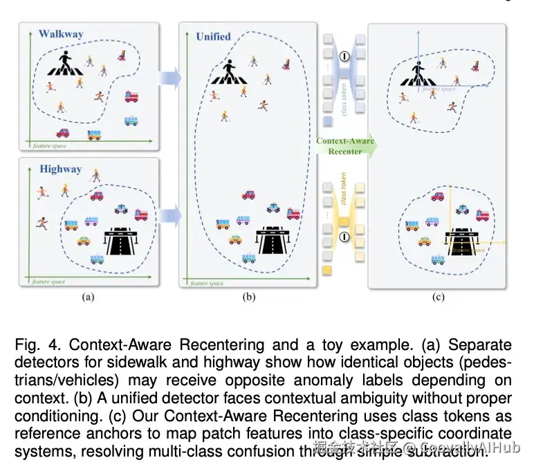 这是解决多类别混淆的关键。同一个物体(如一个圆形),在"螺丝"类别里是正常的,在"饼干"类别里可能就是个缺陷。Dinomaly2做了一个简单的操作:将图像块特征减去类别令牌特征。这个操作让模型学会了"在什么山上唱什么歌",根据类别上下文来理解什么是正常。