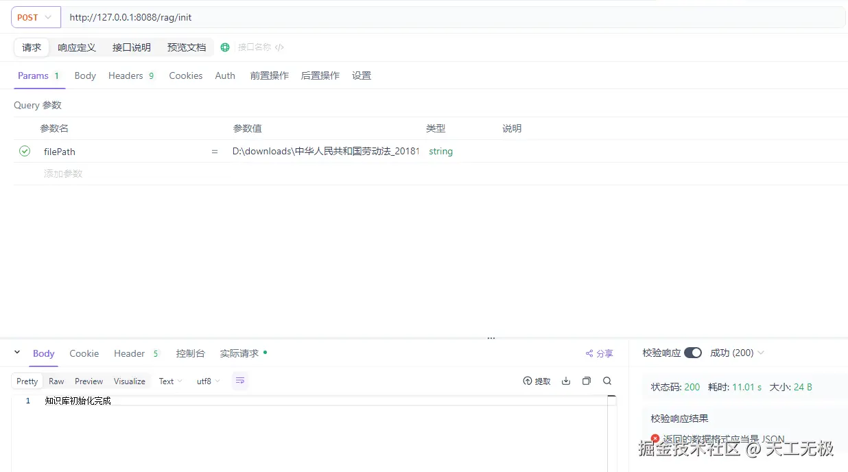 POST http://127.0.0.1:8088/rag/init?filePath=D:\downloads\中华人民共和国劳动法_20181229.docx