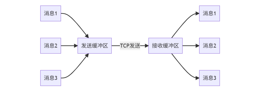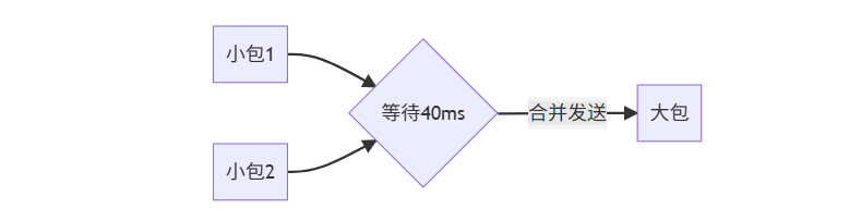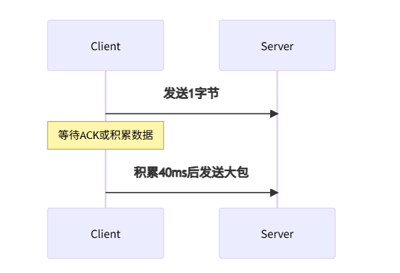 - 发送缓冲区积累多个小包一起发送 → 粘包