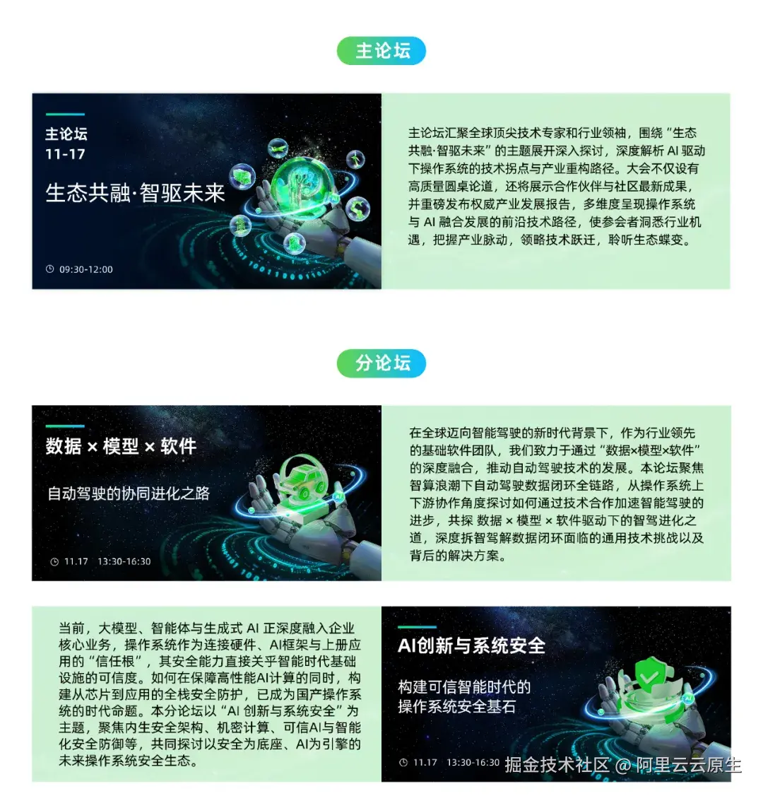- 前沿探索:1 个产业主论坛、5 个技术分论坛,深入探讨 AI 时代下操作系统产业发展的新趋势、新挑战与新路径