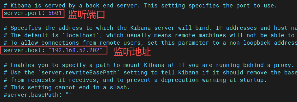 vim /etc/kibana/kibana.yml