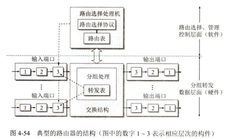 | 分组转发部分 | 负责接收、存储、查表、转发分组 | 数据层面 (硬件实现) |