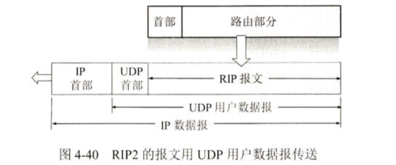 图4-40 表明RIP报文作为运输层用户数据报UDP的数据部分进行传送(使用UDP的
