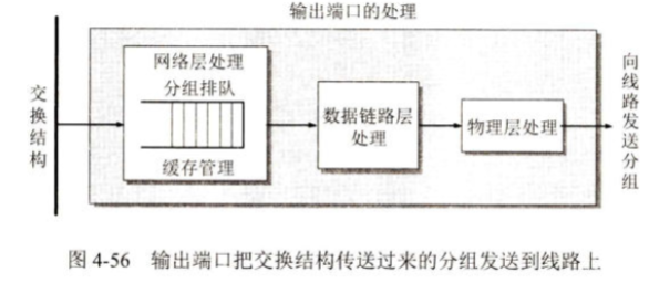 在图4-56中,如果交换速率大于链路传输速率,输出端口可能也会发生排队或分组丢失。