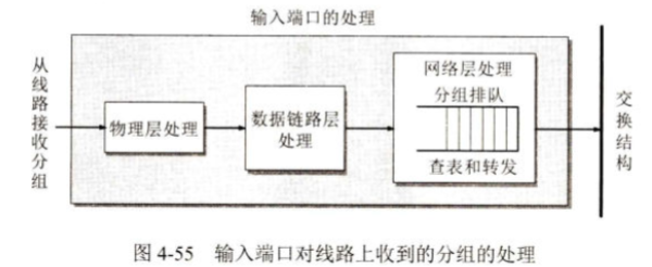 图4-54、图4-55、图4-56展示了路由器中输入端口与输出端口的处理逻辑:
