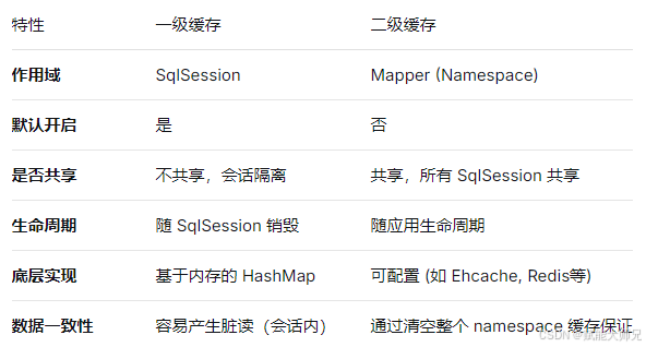 一级缓存 :通常无需特殊配置,理解其存在即可。在需要强制刷新时,可以调用**