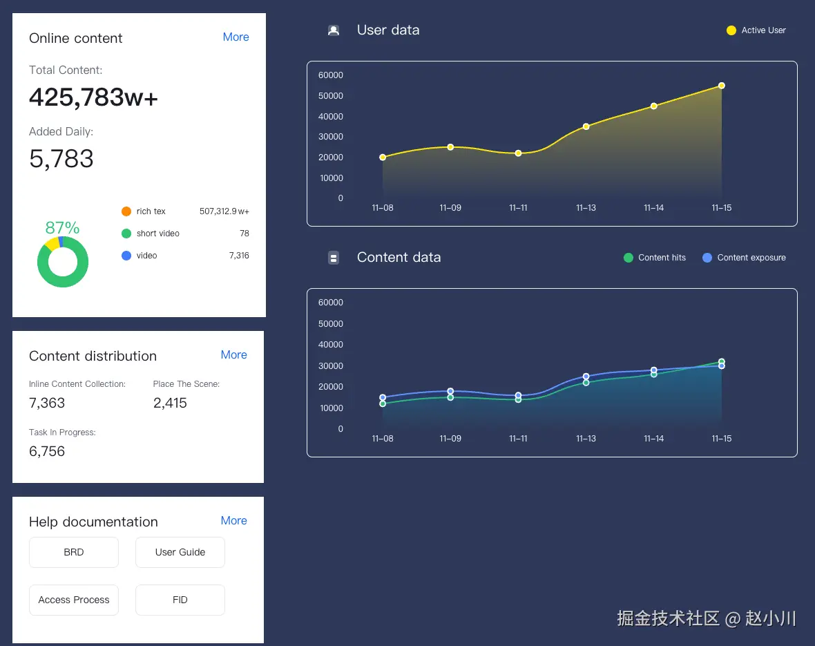 最后的成品 下方是设计稿,上方是他一次性就实现的界面。还是很赞的,调整下高度和相关echarts逻辑就可以用了。