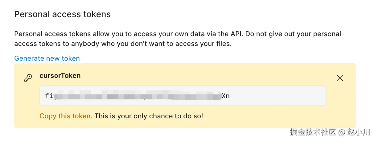 Generate new token,给它一个名字(如Figma-MCP-Service),并确保拥有相关权限,比如FilesDevelopmentProjects等。 - 复制生成的 Token,妥善保存。