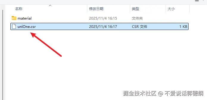 6.设置好csr证书的文件存放地址和名称后,点击完成,可以在文件夹查看是否生成文件,至此p12文件和csr文件已经生成好了,如下图所示: