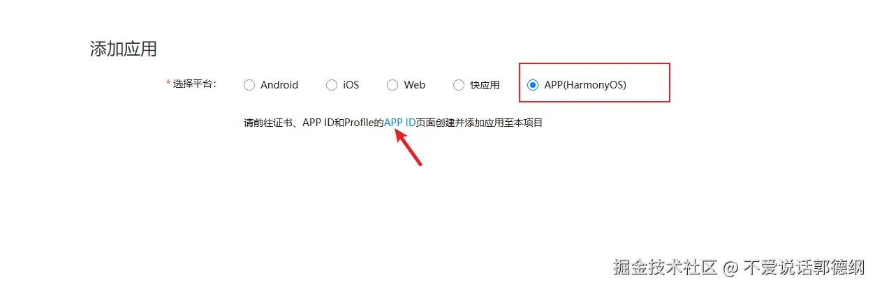 13.点击添加应用,选择鸿蒙OS,点击创建APP ID