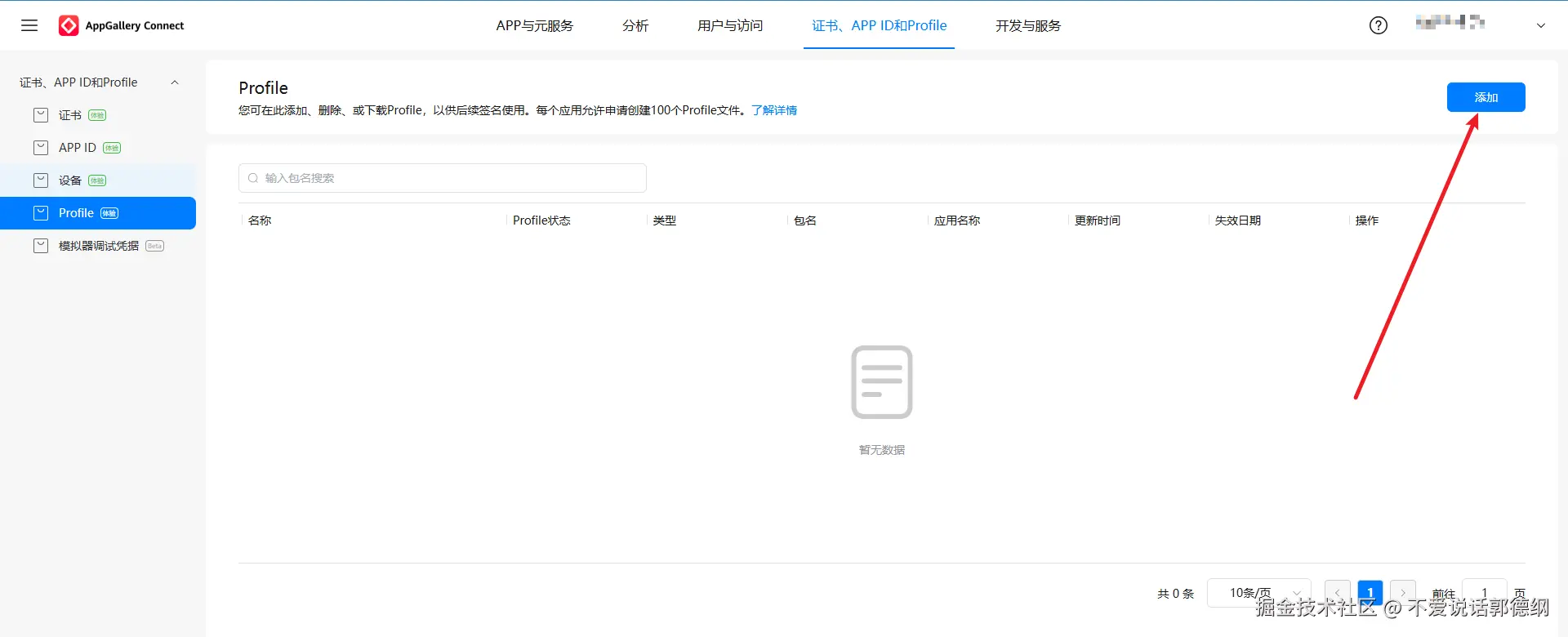 16.添加好设备后,来创建Profile,点击添加