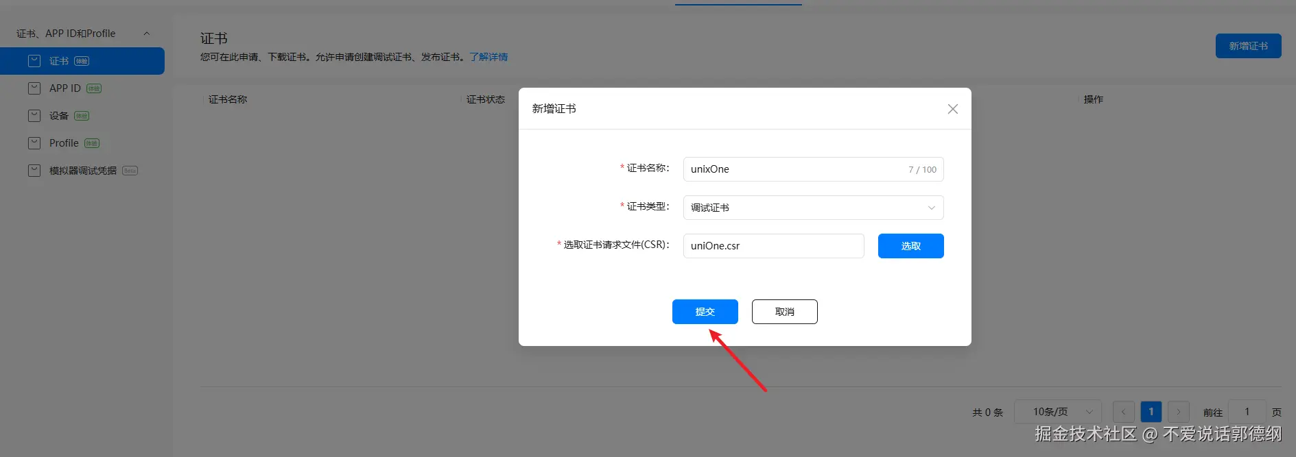 10.然后点击提交后并下载刚生成的 cer证书