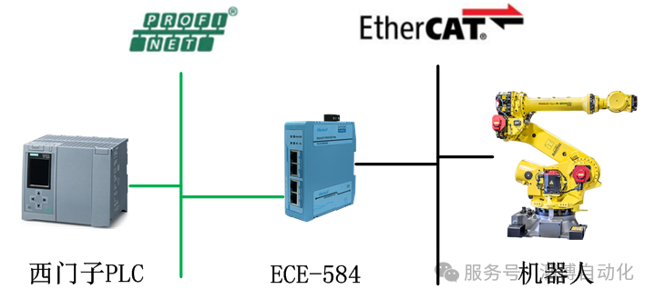 在智能产线中,跨协议设备的高效协同是一大难点。当产线中既有西门子PROFINET系统,又配有EtherCAT机器人(如FANUC、埃斯顿、汇川)时,协议壁垒使数据互通变得复杂。通常,机器人EtherCAT可分为主站与从站两种应用场景。当其作为从站时,可通过TEC-380网关轻松接入PROFINET网络;但当其作为EtherCAT主站时,如何与西门子PLC实现稳定、实时的数据交互?