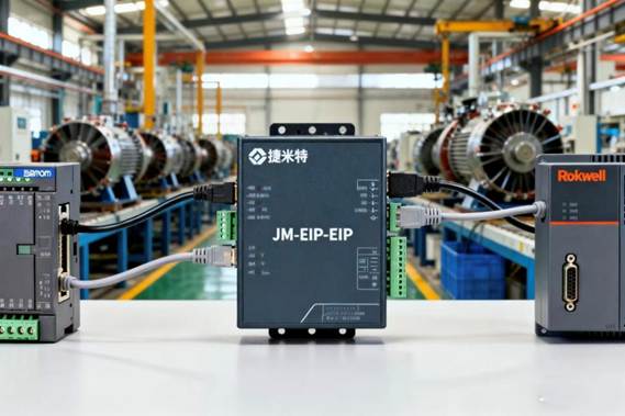 捷米特JM-EIP-EIP工业数据采集转换网关以"透明管道"方式打通同协议不同生态的壁垒,为电机厂柔性制造提供了一条低成本、高可靠、快交付的捷径,也成为后续数字化、孪生、预测性维护的数据高速公路。