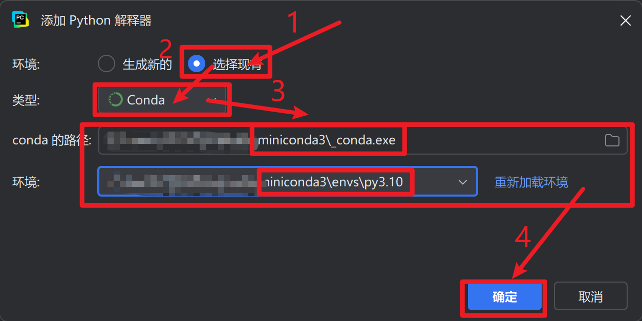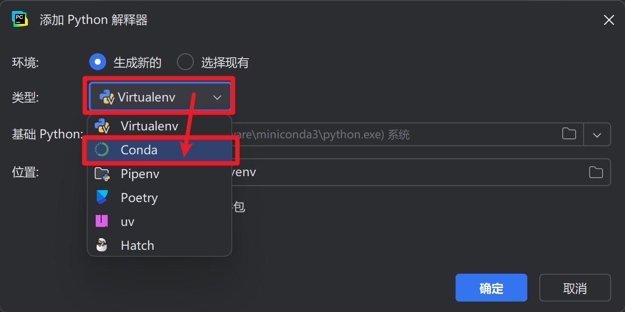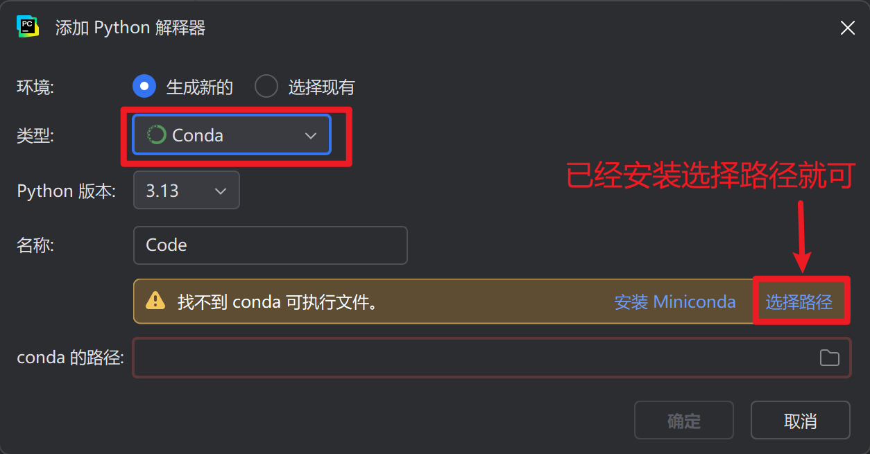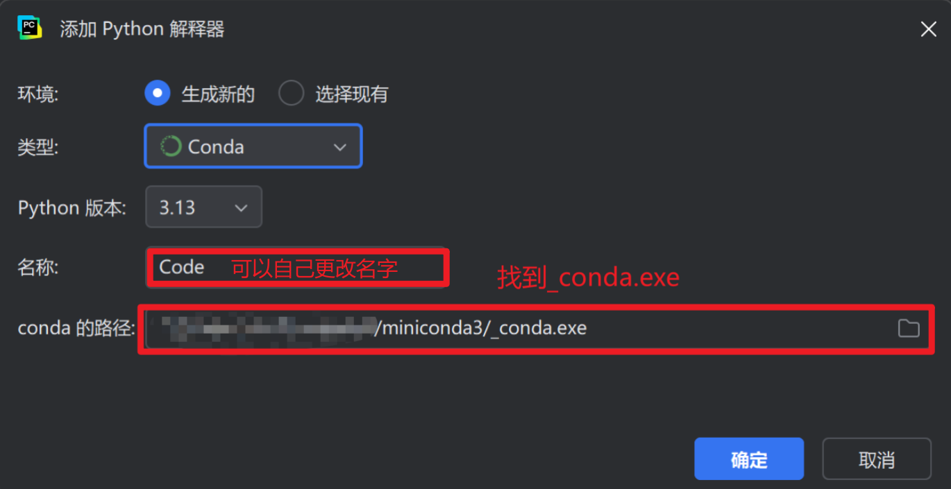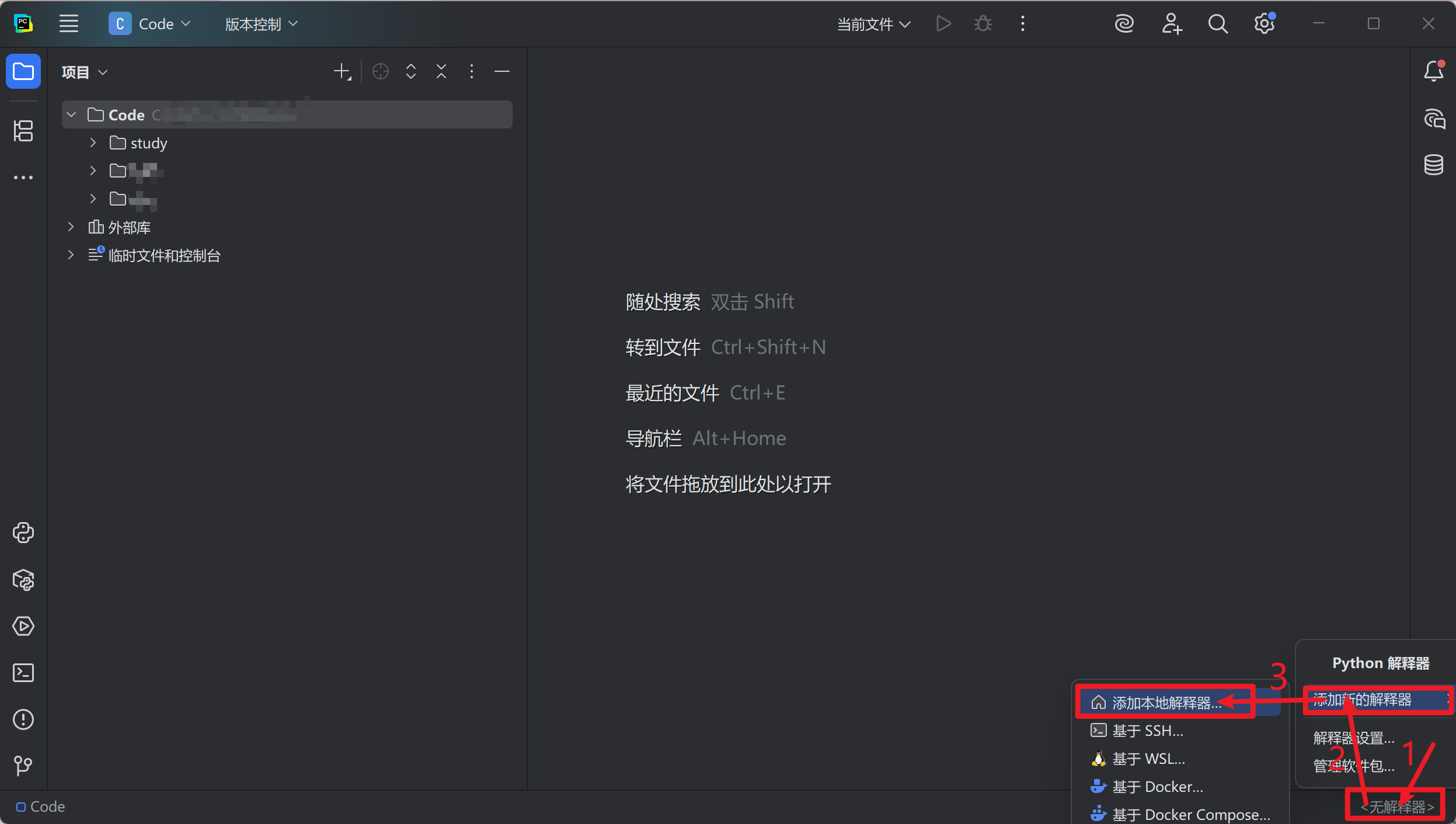 等待完成后,可以看到界面右下角从无解释器变为你自己的环境名就饿可以咯