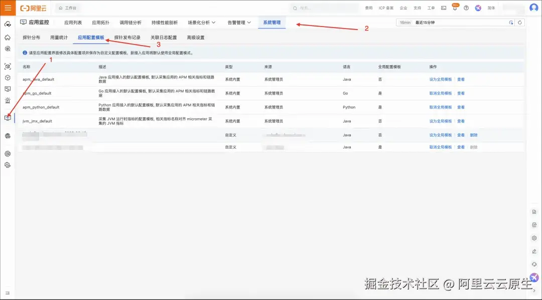前面提到对于一个 Java 应用,目前 ARMS 提供了两种系统内置模板,它们的名字分别是: