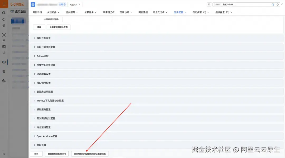 - 进入应用的配置页面将当前应用的配置保存为自定义配置模板。