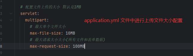 - 上传文件时,默认上传文件的最大大小为1MB,超过1MB需要在配置文件中配置