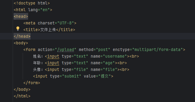 <form action="/upload" method="post" enctype="multipart/form-data">