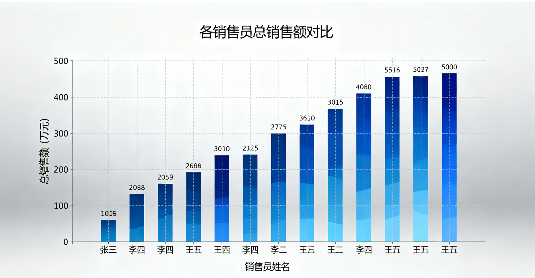 效果:生成一张柱状图展示每个销售员的总销售额。