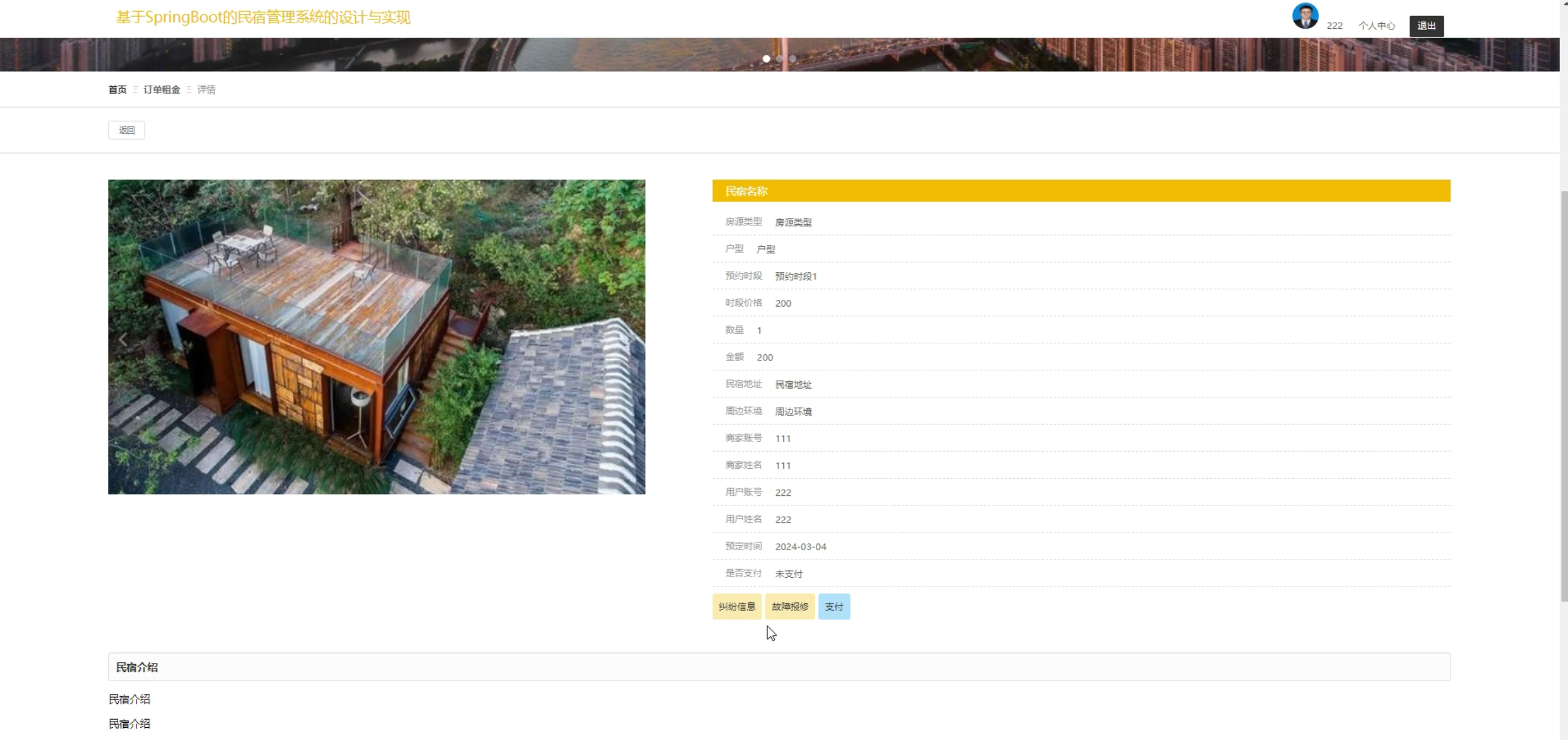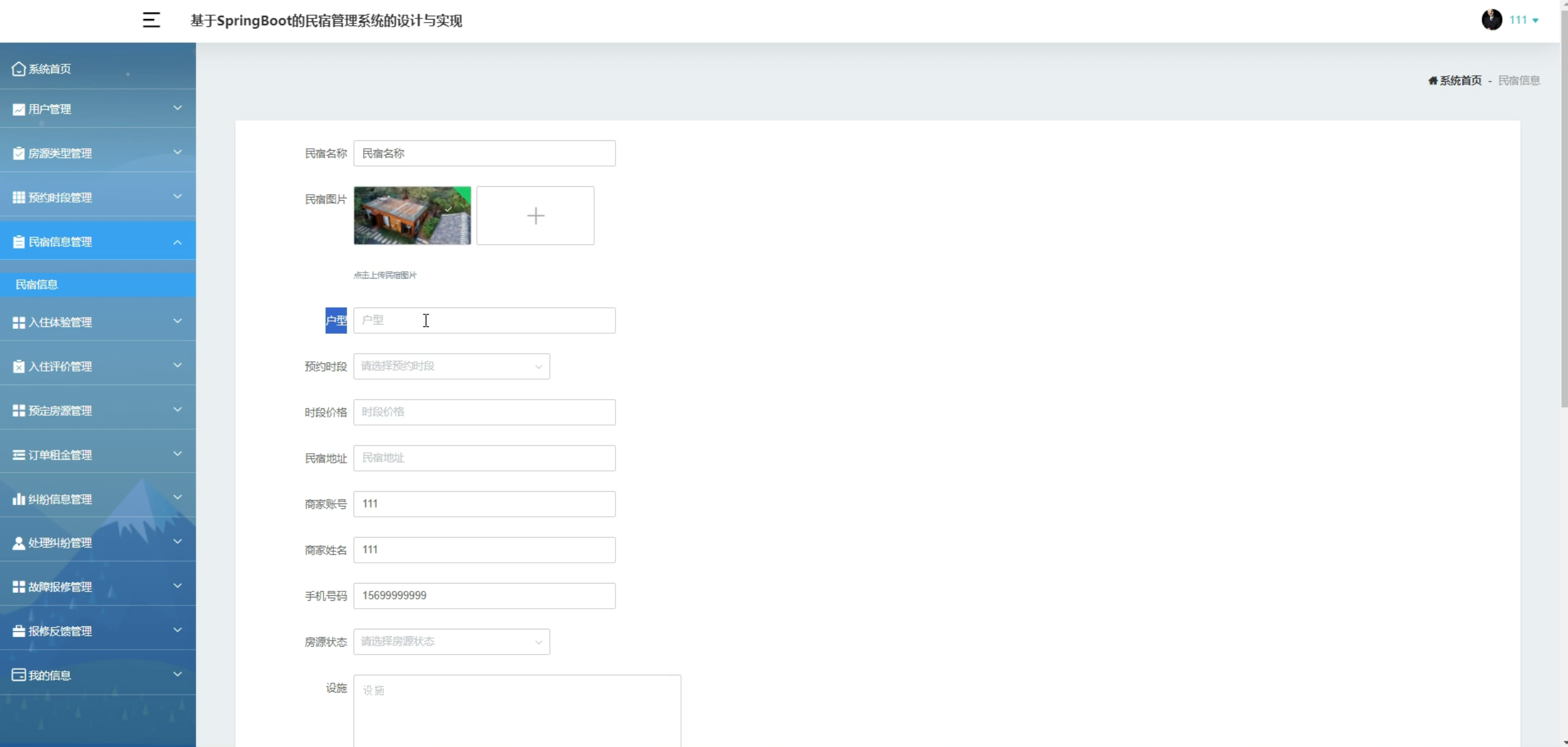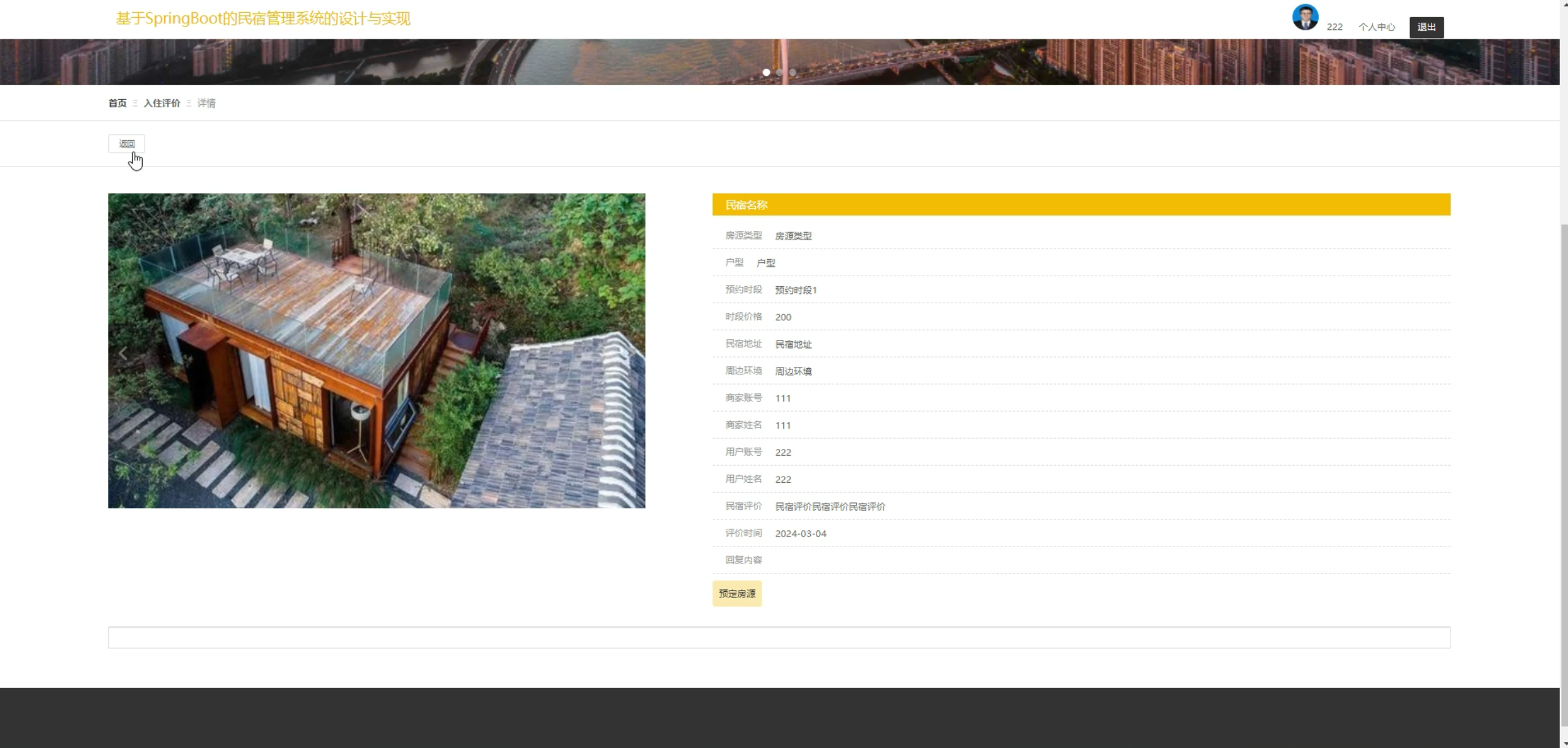 基于SpringBoot的民宿管理系统的设计与实现开题报告